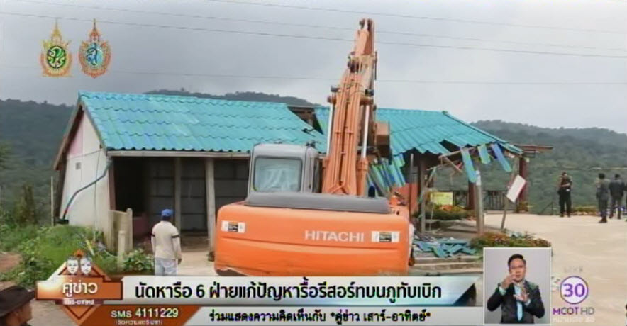 ด้านศูนย์ปฏิบัติการตามมาตรการในการแก้ไขปัญหาการครอบครองและใช้ประโยชน์ที่ดินป่าภูทับเบิก เรียกประชุม 6 ฝ่าย ณ ห้องประชุมที่ว่าการอำเภอหล่มเก่า จ.เพชรบูรณ์ เวลา 11.00 น. มีนายบัณฑิตย์ เทวีทิวารักษ์ ผู้ว่าราชการจังหวัดเพชรบูรณ์ เป็นประธานการประชุม แต่ปรากฏว่าจนถึงขณะนี้ยังไม่สามารถประชุมได้ เนื่องจากเจ้าหน้าที่จากหน่วยงานที่เกี่ยวข้องบางหน่วยติดภารกิจ จึงยังเดินทางมาไม่ครบ การหารือครั้งนี้คาดว่าจะประชุมหารือถึงแนวทางการเข้ารื้อถอนรีสอร์ตบนภูทับเบิก ซึ่งอาจต้องมีการปรับเปลี่ยนแผน เพื่อเดินหน้าออกปฏิบัติการเข้ารื้อถอนรีสอร์ตต่อ. -สำนักข่าวไทย
