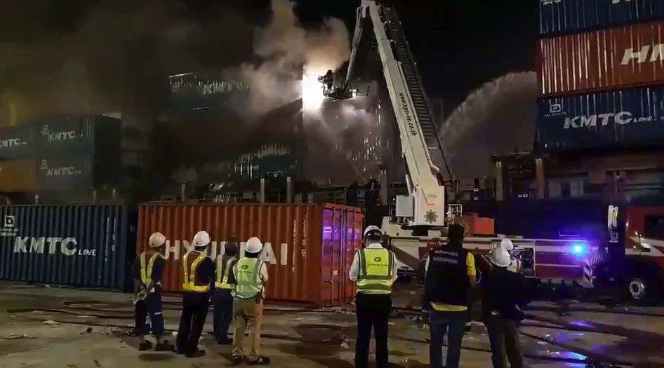 ความคืบหน้ากรณีเพลิงไหม้ตู้คอนเทนเนอร์ ท่าเรือ A2 ท่าเรือแหลมฉบัง ขณะนี้ควบคุมเพลิงได้แล้ว แต่ยังมีเขม่าควันออกมาจากตู้คอนเทนเนอร์ที่ปิดอยู่ เจ้าหน้าที่ดับเพลิงทำการฉีดนำเลี้ยงไว้และจะทยอยเปิดตู้คอนเทนเนอร์เพื่อฉีดนำดับควันภายในตู้ ข้อมูลเบื้องต้นจากบริษัทตัวแทนเรือ สารเคมีที่บรรทุกมา มีผงแคลเซียมไฮโปรคลอไรต์ (calcium hypochlorite) 13 ตู้คอนเทนเนอร์ สารคลอริเนเตท พาราฟิน แวกซ์ (Chlorinated parafin wax) (ของเหลว) จำนวน 5 แทงค์ ซึ่งเกิดเพลิงไหม้บางแทงค์ ส่วนน้ำและโฟมจากการดับเพลิงมีบางส่วนไหลลงทะเล ซึ่งท่าเรือแหลมฉบังได้นำบูม (boom) มากั้น เพื่อป้องกันการแพร่กระจายของนำมันที่ปนมากับนำดับเพลิงแล้ว