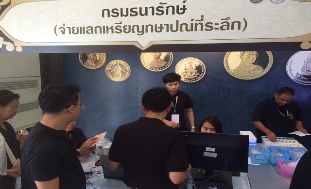 ผู้สื่อข่าว รายงาน บรรยากาศตลาดคลองผดุงกรุงเกษม “คลังพัฒนาชาติ ตลาดคลองผดุงสร้างชีวิต เสริมสร้างเศรษฐกิจมั่นคง” ว่า มีประชาชนจำนวนมากรับบัตรคิว เพื่อเเลกเหรียญกษาปณ์ที่ระลึก ที่กรมธนารักษ์นำมาจ่ายเเลก ตั้งแต่เวลา 05.00 น. ซึ่งแจกบัตรคิววันละ 1,000 คิวแต่ละคิวและต้องนำบัตรประชาชนไปแสดงเพื่อป้องกันการเเลกซ้ำ และกรมธนารักษ์ จำกัดการแลก 1 คน ต่อ 1 ชุด โดยครั้งนี้มีเหรียญกษาปณ์ที่ระลึกเฉลิมพระชนมพรรษา 5 รอบ สมเด็จพระบรมโอรสาธิราชฯ สยามมกุฎราชกุมาร ทองคำขัดเงา ราคาเหรียญละ 30,000 บาท จำกัดแลกวันละ 20 เหรียญ เหรียญเฉลิมพระ ชนมพรรษา 5 รอบ สมเด็จพระบรมโอรสาธิราชฯ เงินขัดเงา ราคาเหรียญละ 1,600 บาท จำกัดแลกวันละ 20 เหรียญ เหรียญเฉลิมพระชนมพรรษา 5 รอบ สมเด็จพระบรมโอรสาธิราชฯ สยามมกุฎราชกุมาร ชุด 2 เหรียญราคาชุดละ 100 บาท เหรียญ 150 ปี วันพระราชสมภพพระบาทสมเด็จพระปรมินทรมหาประชาธิปกพระปกเกล้าเจ้าอยู่หัว ชุด 5 เหรียญ ราคาชุดละ 100 บาท