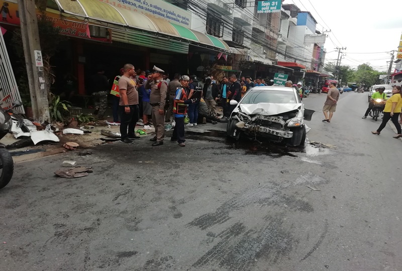 ด้านนายประสิทธิ์ เพียรธนภาส อายุ 70 ปี ผู้เห็นเหตุการณ์เล่าว่า ขณะนอนหลับพักผ่อนอยู่ภายในบ้านได้ยินเสียงรถชนดังสนั่นจึงวิ่งออกมาดูพบตำรวจนอนอยู่หน้าห้องแถวฝั่งตรงข้ามกลับบ้านตน ส่วนอีกคนนอนอยู่บนพื้นถนนขณะรถเก๋งสีขาวในสภาพด้านหน้าพังยับเยินจอดอยู่กลางถนน จากนั้นเห็นตำรวจสายตรวจจอดรถมอเตอร์ไซต์วิ่งลงไปล้อมรถเก๋งและทุบกระจกรถด้านคนขับ ในสภาพบาดเจ็บ.-สำนักข่าวไทย