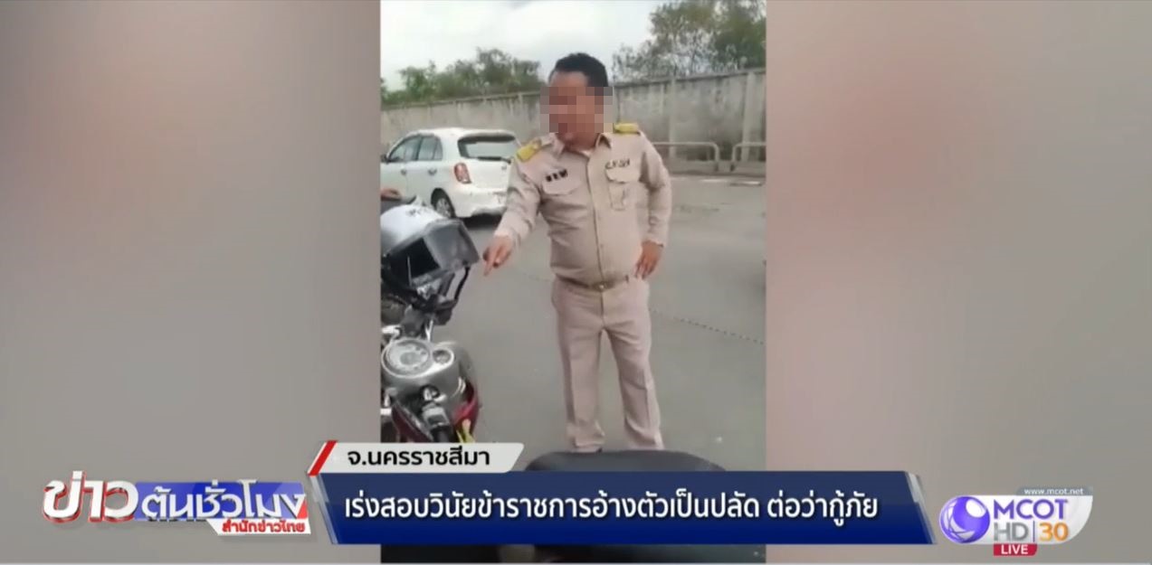 นครราชสีมา 28 พ.ค. – องค์การบริหารส่วนจังหวัดนครราชสีมาเร่งสอบวินัยชายแต่งชุดข้าราชการในคลิปที่อ้างตัวเป็นปลัด และด่าทอเจ้าหน้าที่กู้ภัยขณะช่วยคนเจ็บบนถนนเมื่อวานนี้