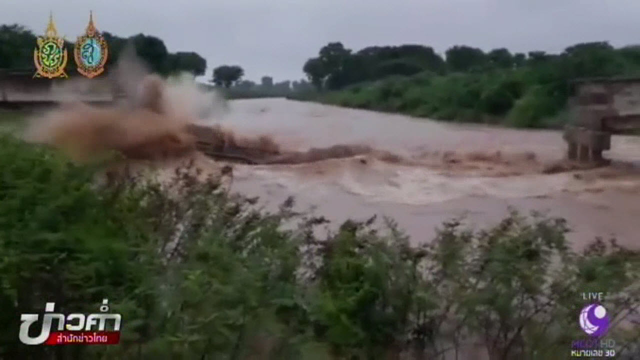 ภาพกระแสน้ำในแม่น้ำวัง ซึ่งไหลเชี่ยวกรากได้ซัดสะพานคอนกรีตข้ามแม่น้ำวัง ซึ่งเชื่อมระหว่างหมู่บ้านห้วยข่อยและหมู่บ้านแม่สุข อ.วังเหนือ จ.ลำปาง พังถล่มและถูกกระแสน้ำพัดหายไปทั้งหมด ท่ามกลางเสียงเฮของชาวบ้านในพื้นที่ เนื่องจากสะพานดังกล่าวทรุดโทรมมาหลายปี และได้เรียกร้องให้หน่วยงานที่เกี่ยวข้องเข้าซ่อมแซมแต่ยังไม่มีความคืบหน้า กระทั่งถูกน้ำซัดพังวันนี้จึงทำให้ชาวบ้านได้สะพานใหม่ ขณะที่ล่าสุดนายอำเภอวังเหนือ พร้อมทหารจากมณฑลทหารบกที่ 32 ได้ลงพื้นที่พร้อมสั่งการให้นำกำลังเข้าสำรวจความเสียหายสาธารณูปโภคทั้งหมด อย่างไรก็ตามคาดว่าชาวบ้านกว่า 40 หมู่บ้านใน 4 ตำบลจะได้รับผลกระทบจากสะพานขาดครั้งนี้ เนื่องจากต้องอ้อมไปใช้เส้นทางอื่นซึ่งอยู่ไกลออกไป 5-10 กิโลเมตรเพื่อเข้าตัวอำเภอฯ ขณะที่สำนักงานป้องกันและบรรเทาสาธารณภัยจังหวัดฯ ได้ส่งชุดเคลื่อนที่เร็วเข้าช่วยเหลือประชาชนในพื้นที่อย่างเร่งด่วนแล้ว
