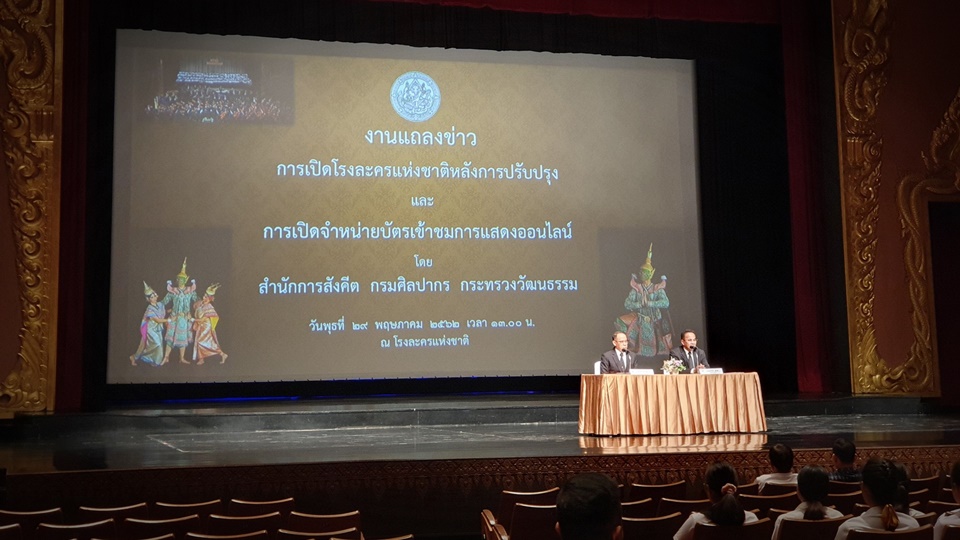 นายอนันต์ ชูโชติ อธิบดีกรมศิลปากร เป็นประธานในการแถลงข่าวการเปิดโรงละครแห่งชาติหลังปิดปรับปรุงระบบแอร์เครื่องปรับอากาศ และ การเปิดจำหน่ายบัตรเข้าชมการแสดงแบบออนไลน์ E-ticket โดยอธิบดีกรมศิลปากร กล่าวว่า โรงละครแห่งชาติ สร้างขึ้นเมื่อพุทธศักราช 2508 และได้เริ่มจัดการแสดงเป็นปฐมฤกษ์เมื่อวันที่ 23 ธันวาคม 2508 นับเป็นระยะเวลากว่า 50 ปีที่กรมศิลปากรได้ดำเนินกิจการโรงละครแห่งชาติ สนองแนวพระราชดำริพระบาทสมเด็จพระมงกุฎเกล้าเจ้าอยู่หัว รัชกาลที่ 6 ในการให้ศิลปินมีสถานที่สำหรับแสดงออกซึ่งศิลปะ และเป็นสถานที่แสดงให้เห็นความเจริญรุ่งเรืองทางศิลปวัฒนธรรมของชาติจวบจนถึงปัจจุบัน ก่อนจะปิดปรับปรุงเป็นการชั่วคราวเมื่อเดือนเมษายนที่ผ่านมา เพื่อบำรุงรักษาและเพิ่มประสิทธิภาพในการให้บริการของโรงละครแห่งชาติ ซึ่งดำเนินการเรียบร้อยแล้ว และจะเริ่มเปิดการแสดงอีกครั้งในวันที่ 1 มิถุนายน 2562 โดยเป็นการแสดงรายการศิลปากรคอนเสิร์ต Classical in Touch I และวันที่ 2 มิถุนายน 2562 เป็นการแสดงโขน เรื่องรามเกียรติ์ ชุด ขุนยักษ์ผู้ภักดี พร้อมกันนี้ ได้เปิดให้บริการระบบจำหน่ายบัตรเข้าชมการแสดงแบบออนไลน์ เพื่อเพิ่มช่องทางในการเข้าถึงและอำนวยความสะดวกให้แก่ประชาชน นอกเหนือจากเคาน์เตอร์จำหน่ายบัตร ณ โรงละครแห่งชาติ โดยสามารถจองบัตรเข้าชมการแสดงได้ทางเว็บไซต์ https://ntt.finearts.go.th (National Theater Ticket)