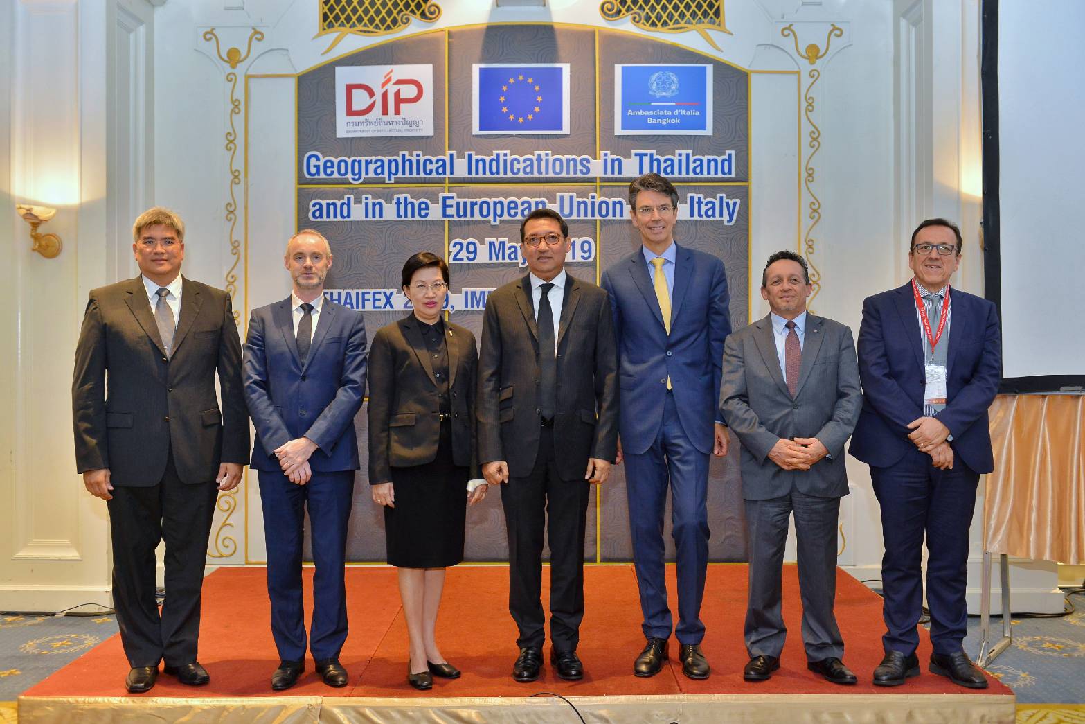 นายทศพล ทังสุบุตร อธิบดีกรมทรัพย์สินทางปัญญา เปิดเผยภายหลังสัมมนาเรื่อง “Geographical Indications in Thailand and in the European Union and Italy” ว่า กรมฯ ร่วมกับสถานเอกอัครราชทูตอิตาลีประจำประเทศไทยและคณะผู้แทนสหภาพยุโรปประจำประเทศไทย ส่งเสริมให้ผู้ผลิตและผู้ประกอบการสินค้า GI ไทยตระหนักถึงความสำคัญของการรักษาคุณภาพสินค้าให้ได้ตามมาตรฐานระดับสากล รวมทั้งเปิดโอกาสในการรับทราบแนวทางการเพิ่มมูลค่าให้กับสินค้า และโอกาสในการขยายช่องทางการตลาดในระดับ