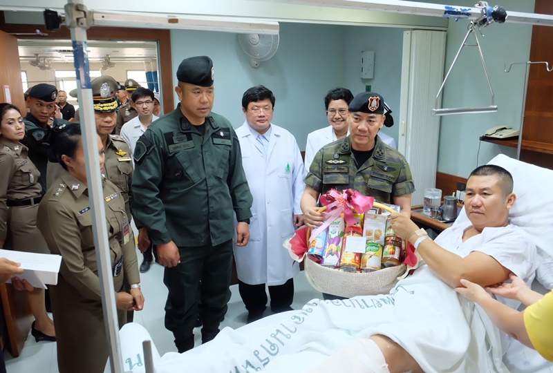 พล.ต.อ.จักรทิพย์ ชัยจินดา ผบ.ตร. พร้อมด้วย พล.ต.ท.รณศิลป์ ภู่สาระ ผบช.ภ.9 และคณะ เดินทางมาตรวจเยี่ยมบำรุงขวัญ ให้กำลังใจแก่ข้าราชการตำรวจที่ได้รับบาดเจ็บจากเหตุคนร้ายลอบวางระเบิด หลังสถานีรถไฟจะนะ อ.จะนะ จ.สงขลา เมื่อวันที่ 26 พ.ค. 62 ที่ผ่านมา ณ โรงพยาบาลสงขลานครินทร์ และ โรงพยาบาลนาหม่อม พร้อมกันนี้ ผบ.ตร. ได้เป็นตัวแทน พล.อ.ประยุทธ์ จันทร์โอชา นายกรัฐมนตรี และ พล.อ.ประวิตร วงษ์สุวรรณ รองนายกรัฐมนตรีและรัฐมนตรีว่าการกระทรวงกลาโหม มอบเงินบำรุงขวัญและความเป็นห่วงเป็นใยถึงเจ้าหน้าที่ตำรวจที่ได้รับบาดเจ็บ จากเหตุความไม่สงบดังกล่าวด้วย