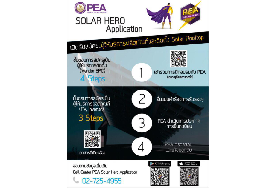 ติดต่อสอบถามข้อมูล เพิ่มเติม Call Center : PEA Solar Hero Application 02-725-4955