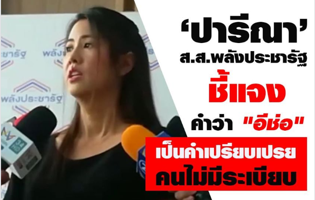 กรุงเทพฯ 29 พ.ค.-“ปารีณา” ส.ส.พลังประชารัฐ ชี้แจงคำว่า “อีช่อ” เป็นคำเปรียบเปรยคนไม่มีระเบียบ ยืนยันไม่ได้พาดพิงถึงใคร
