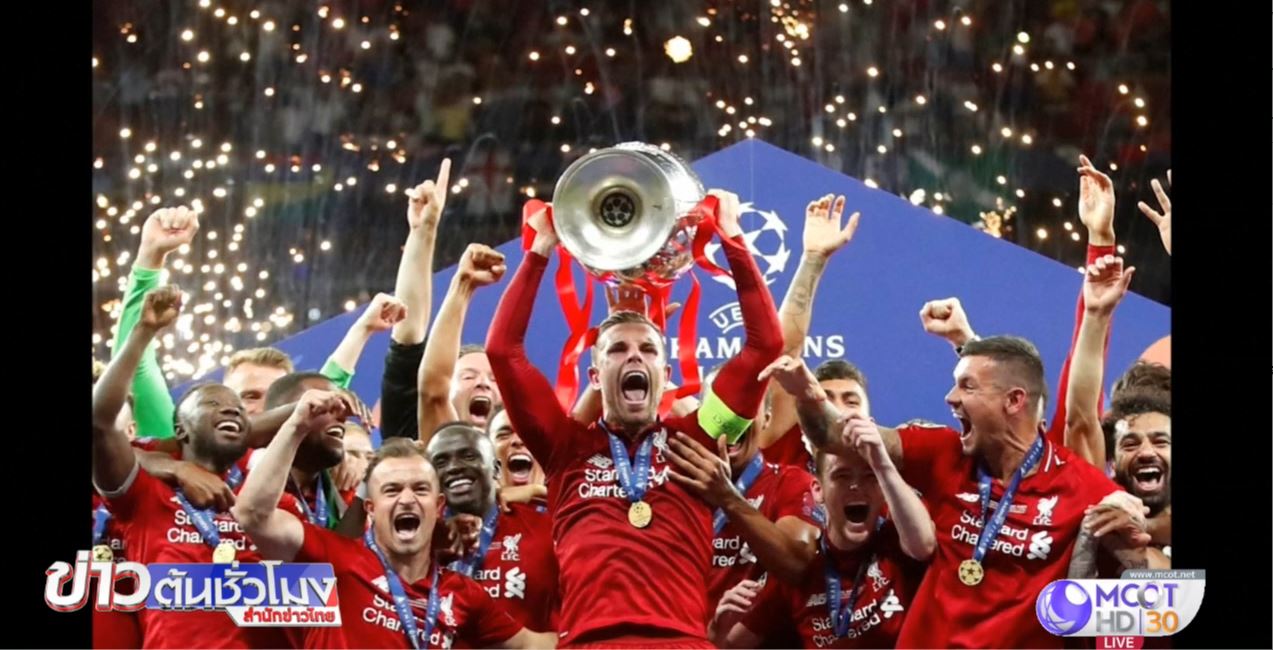 สเปน 2 มิ.ย. – ลิเวอร์พูล คว้าแชมป์ฟุตบอลยูฟ่า แชมเปียนส์ลีก ฤดูกาล 2018-2019 หลังเอาชนะสเปอร์ส ในนัดชิงชนะเลิศ 2-0 จากประตูจุดโทษของ โมฮาเหม็ด ซาลาห์ นาทีที่ 2 และดีว็อก โอริกี ตัวสำรองนาทีที่ 87 เป็นแชมป์ยุโรปสมัยที่ 6 ของทีมหงส์แดง