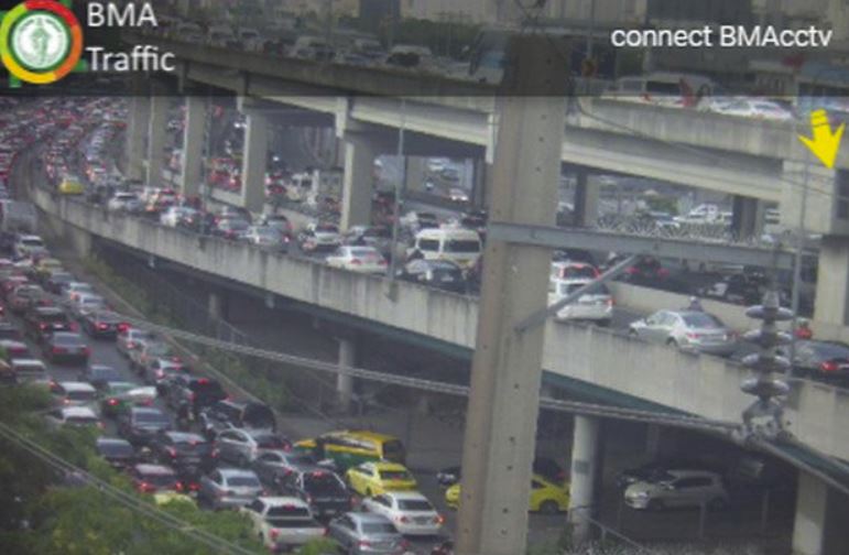 ถนนรัชดาภิเษก ขาเข้า มุ่งหน้าแยกรัชดา-ลาดพร้าว แยกรัชดา-สุทธิสาร แยกเทียมร่วมมิตร รถเคลื่อนตัวได้ช้า ท้ายแถวสะสมอยู่ที่ทางขึ้นอุโมงค์รัชโยธิน ส่วนฝั่งขาออก ยังเคลื่อนตัวได้ดี