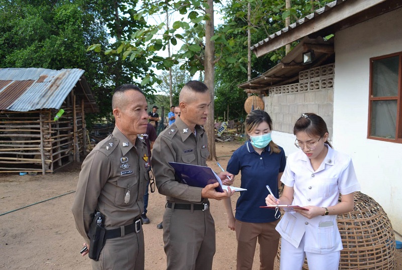 พ.ต.ท.อาทิตย์ ใจมา รองผู้กำกับการสืบสวน สภ.เถิน จ.ลำปาง พร้อมชุดสืบสวนสอบสวน แพทย์และกู้ภัยเข้าตรวจสอบผู้เสียชีวิตหน้าบ้านพักหมู่ 2 บ้านป่าตาล ต.เถินบุรี อ.เถิน เช้าวันนี้ (5 มิ.ย.) สภาพศพมีเชือกไนล่อนผูกคอเป็นชายรูปร่างสูงใหญ่ อายุ 46 ปี ชาวเมียนมา คาดว่าเสียชีวิตมาไม่ต่ำกว่า 4 ชั่วโมง จากการตรวจสอบทราบว่าชายดังกล่าวก่อนหน้านี้ได้ก่อเหตุใช้อาวุธมีดทำร้ายภรรยาชาวไทย อายุ 51 ปี เสียชีวิตในห้องน้ำบ้านพักเมื่อวันที่ 4 มิ.ย.ที่ผ่านมา จากนั้นได้หลบหนีไป ส่วนสาเหตุอาจมาจากเครียดในอาการป่วยทั้งของตัวเองและภรรยา ซึ่งระยะหลังทั้งสองมีอาการทรุดลงเรื่อย ๆ.-สำนักข่าวไทย