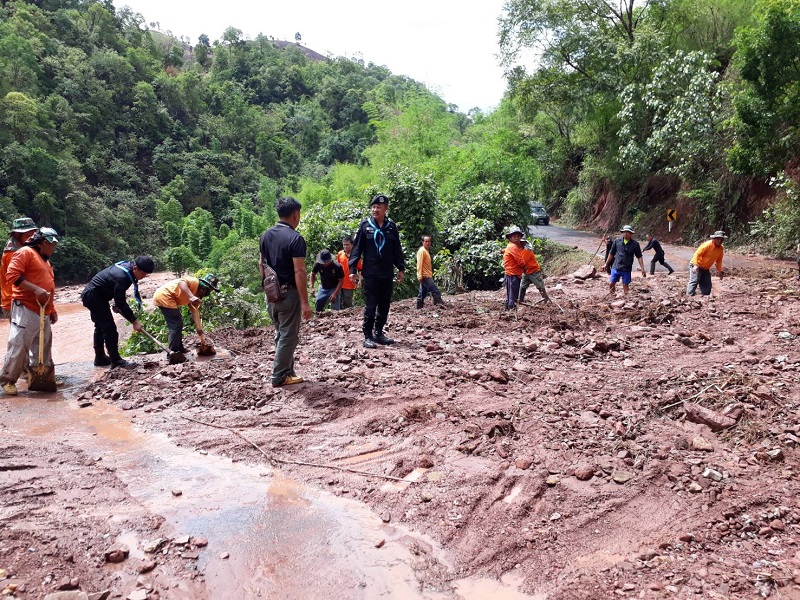 พ.อ.รัตนะ พัฒนโสภณ ผู้บังคับการหน่วยเฉพาะกิจกรมทหารพรานที่ 32 และ ร.ท.ปรัชญา สำโรง ผบ.ร้อย.ทพ.3207 และเจ้าหน้าที่หมวดการทางเฉลิมพระเกียรติ เร่งเปิดเส้นทางบ้านด่าน-บ้านนาคุ ต.ขุนน่าน อ.เฉลิมพระเกียรติ ซึ่งได้รับผลกระทบจากฝนตกติดต่อกันมา 3 วัน ทำให้ดินไหลตัวบนเส้นทาง รถยนต์ขนาดใหญ่ไม่สามารถผ่านได้ ส่วนโรงเรียนบ้านด่านใกล้แม่น้ำน่าน น้ำเอ่อเข้าโรงเลี้ยงไก่ไข่ของโรงเรียน ครูและนักเรียนช่วยกันขนย้ายไก่และอุปกรณ์การเกษตรให้พ้นน้ำ นอกจากนี้ เส้นทางบ้านนาคุ อ.เฉลิมพระเกียรติ-บ้านขุนน้ำน่าน อ.บ่อเกลือ ซึ่งหน่วยทหารพราน 3207 ได้จัดกำลังคอยอำนวยความสะดวกให้กับประชาชนที่ต้องใช้ผ่านเส้นทางดังกล่าว เบื้องต้นยังไม่มีรายงานบ้านเรือนได้รับความเสียหาย แม้ขณะนี้ฝนทิ้งช่วง แต่สภาพอากาศไม่น่าวางใจ ท้องฟ้ายังมืดครึ้ม ต้องเฝ้าระวังสถานการณ์อย่างใกล้ชิด