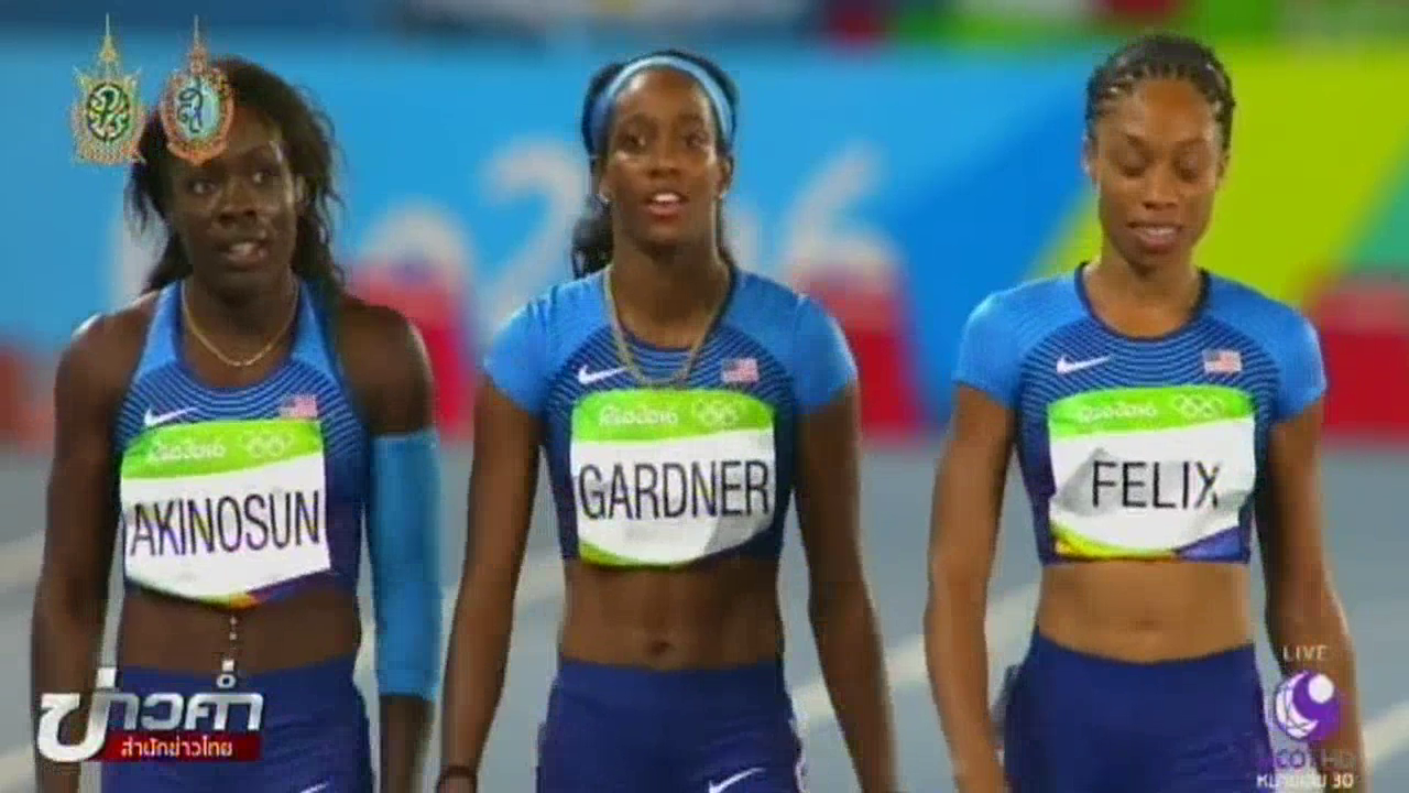 วิ่งผลัด 4×100 เมตรหญิง ในรีโอเกมส์เมื่อคืนที่ผ่านมา รอบคัดเลือกกลุ่มที่ 2 เกิดผลการแข่งขันที่พลิกความคาดหมาย เมื่อลมกรดสาวทีมชาติสหรัฐ เจ้าของเหรียญทองลอนดอนเกมส์ ทีมเต็งจ๋าที่ประกอบไปด้วย ทิอันนา บาโตเลตต้า, อัลลีสัน เฟลิกซ์, อิงลิช การ์ดเนอร์ และ โมโรเลก อคิโนสัน กลับส่งไม้ตกในจังหวะที่เฟลิกซ์ ซึ่งอยู่ในลำดับที่ 2 ส่งไม้ให้ การ์ดเนอร์ในไม้ที่ 3 และทำให้ทีมสหรัฐอเมริกาต้องเสียเวลาพร้อมกับเข้าเส้นชัยเป็นอันดับสุดท้ายถูกตัดออกจากการแข่งขันไปแล้ว