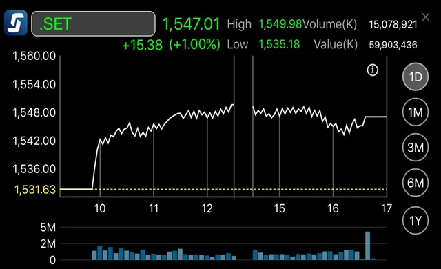 ตลท. 19 ส.ค. – ผู้สื่อข่าวรายงานว่าดัชนีตลาดหุ้นไทยปิดการซื้อขายวันนี้ (19 ส.ค.) ที่ระดับ 1,538.76 จุด ลดลง 8.25 จุด หรือร้อยละ 0.53 มูลค่าการซื้อขาย 51,397.52 ล้านบาท ดัชนีร่วงลงกว่า 10 จุด ในช่วงบ่าย มีแรงขายนำออกมาในหุ้นขนาดใหญ่ในกลุ่มหลักทั้งแบงก์ สื่อสาร และวัสดุก่อสร้าง รวมถึงพลังงาน โดยดัชนีสูงสุดของวันที่ระดับ 1,551.46 จุด และต่ำสุดของวันที่ระดับ 1,535.87 จุด