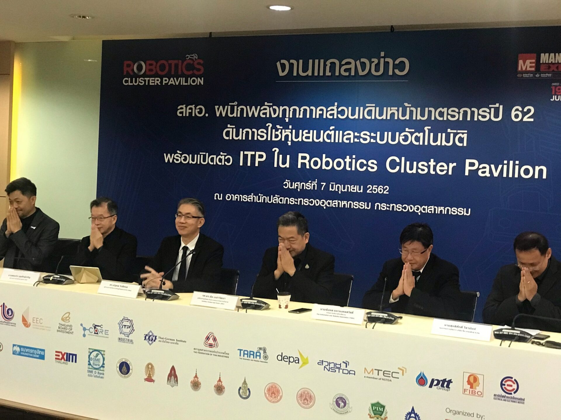 กรุงเทพฯ 7 มิ.ย. – สำนักงานเศรษฐกิจอุตสาหกรรมจับมือทุกภาคส่วน ขยายผลมาจากการขับเคลื่อนการใช้หุ่นยนต์และระบบอัตโนมัติ ยกระดับภาคการผลิตของอุตสาหกรรมไทย และความพร้อมการจัดงาน Robotics Cluster Pavilion ในงานแมนูแฟคเจอริ่ง เอ็กซ์โป 2019