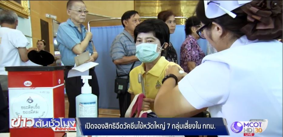 ประชาชนในเขตกรุงเทพมหานครที่เป็น 7 กลุ่มเสี่ยงโรคไข้หวัดใหญ่ สามารถจองสิทธิฉีดวัคซีนไข้หวัดใหญ่โดยไม่เสียค่าใช้จ่าย ผ่านระบบออนไลน์ได้ตั้งแต่วันนี้ถึงสิ้นเดือนมิถุนายน ประกอบด้วย กลุ่มหญิงตั้งครรภ์ อายุครรภ์มากกว่า 4 เดือน, เด็กอายุ 6 เดือน-2 ปี, ผู้ป่วยโรคเรื้อรัง 7 กลุ่ม เช่น โรคหอบหืด หัวใจ เบาหวาน, ผู้สูงอายุมากกว่า 65 ปี, ผู้พิการทางสมองที่ช่วยเหลือตนเองไม่ได้, ผู้ป่วยธาลัสซีเมีย และผู้มีภูมิคุ้มกันบกพร่อง, ผู้เป็นโรคอ้วน น้ำหนักตัวมากกว่า 100 กิโลกรัม โดยลงทะเบียนได้ 2 รูปแบบ คือ ผู้ที่ได้รับข้อความ SMS จำนวน 100,000 ราย สามารถกดยืนยันจองสิทธิได้ทันที และรูปแบบที่ 2 ผ่านระบบลงทะเบียนในลิงค์ของ สปสช.เขต13