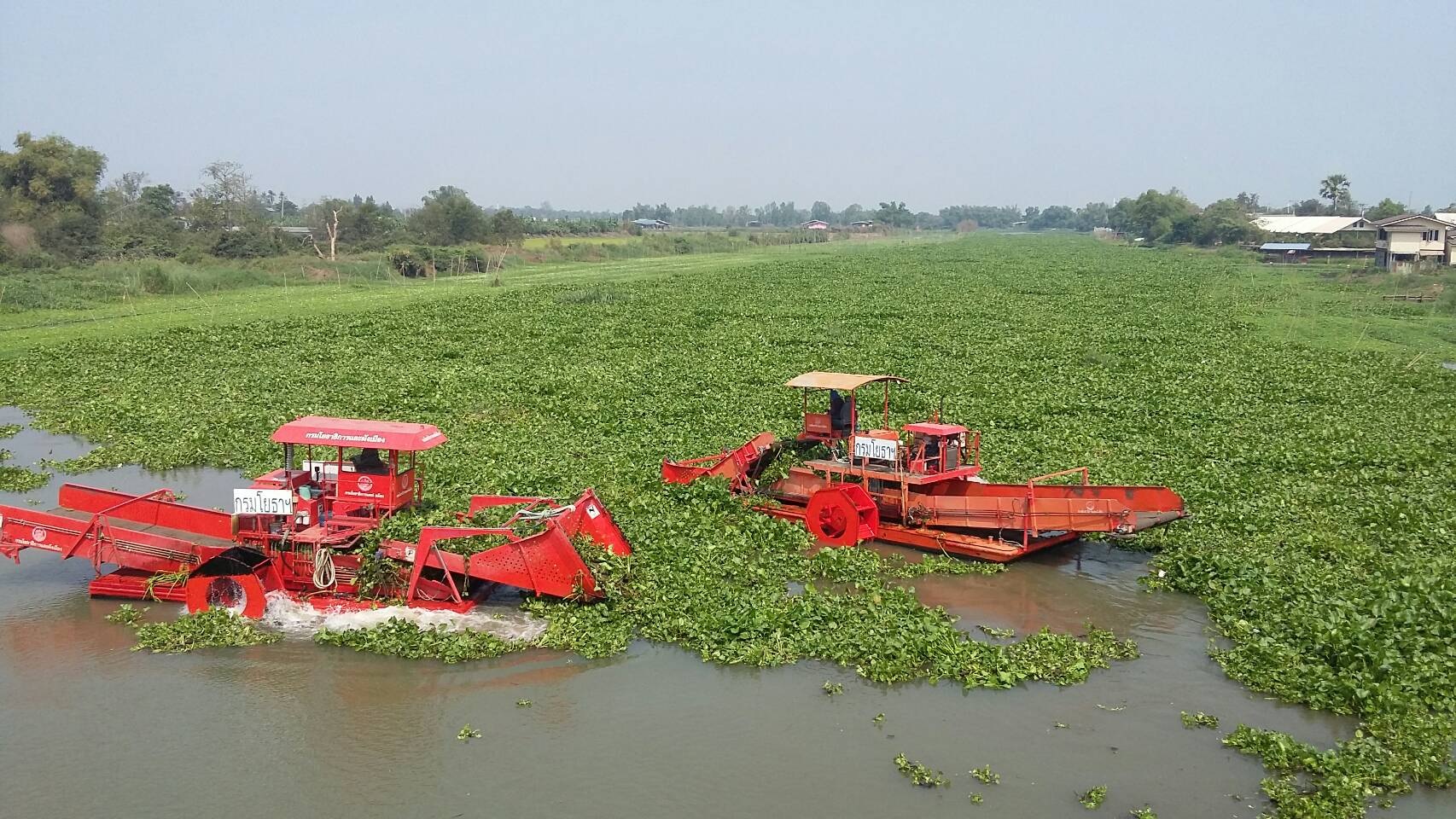 นายสมเกียรติ กล่าวเพิ่มเติมอีกว่า นอกจากสิ่งกีดขวางทางน้ำที่เป็นอาคารสิ่งก่อสร้างแล้ว สทนช.ยังได้ติดตามความก้าวหน้าการจัดการแก้ไขปัญหาผักตบชวา ซึ่งถือเป็นอีกหนึ่งปัญหาที่ส่งผลทำให้ประสิทธิภาพการไหลของน้ำลดลง โดยกรมโยธาธิการและผังเมืองซึ่งเป็นหน่วยงานรับผิดชอบหลักได้ดำเนินการสำรวจปริมาณผักตบชวาในแหล่งน้ำทั่วประเทศที่ต้องดำเนินการจัดเก็บและดำเนินการร่วมกับหน่วยงานที่เกี่ยวข้องกำจัดผักตบชวามาอย่างต่อเนื่อง ซึ่งฤดูฝนนี้กรมโยธาธิการและผังเมืองบูรณาการร่วมกับ 3 หน่วยงานหลักที่เกี่ยวข้อง และกำหนดพื้นที่ความรับผิดชอบในแม่น้ำสายหลักอย่างชัดเจน ได้แก่ กรมโยธาธิการและผังเมือง รับผิดชอบแม่น้ำแม่กลอง แม่น้ำท่าจีนตั้งแต่ประตูระบายน้ำโพธิ์พระยา ลงมาถึงอ่าวไทย กรมเจ้าท่า แม่น้ำเจ้าพระยา แม่น้ำป่าสัก และแม่น้ำลพบุรี กรมชลประทาน แม่น้ำบางประกง แม่น้ำน้อย แม่น้ำท่าจีนตั้งเหนือประตูระบายน้ำโพธิ์พระยา และพื้นที่คลองชลประทาน กรุงเทพมหานคร แม่น้ำเจ้าพระยาที่ไหลผ่านพื้นที่กรุงเทพมหานคร
