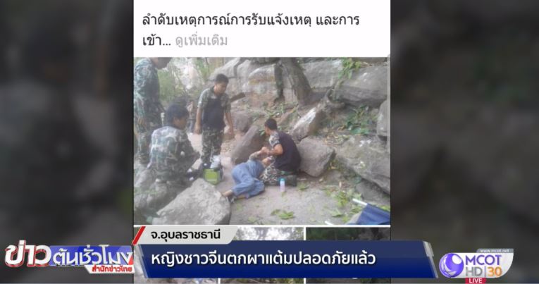 อุบลราชธานี 9 มิ.ย.-หญิงชาวจีนท้อง 3 เดือนตกผาแต้ม ปลอดภัยแล้วทั้งแม่และลูก ตำรวจพบสามีทำตัวมีพิรุธ ไม่เชื่อเธอจะตกลงไปโดยบังเอิญ