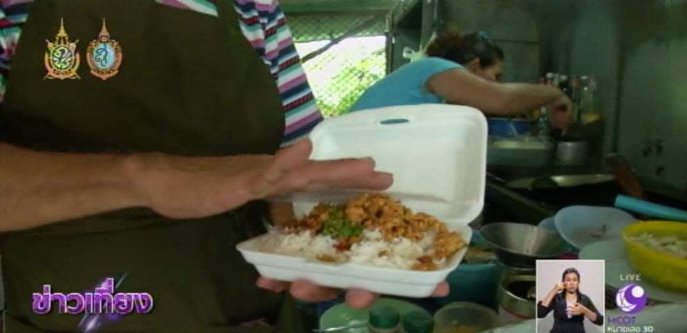 “กล่องโฟม” น้ำหนักเบา ราคาถูก เป็นที่นิยมสำหรับข้าวกล่อง ร้านอาหารตามสั่งรสแซบ หน้า อสมท แห่งนี้ใช้กล่องโฟมมานานแล้ว เจ้าของร้านมีหลักปฏิบัติสำหรับการใช้กล่องโฟม