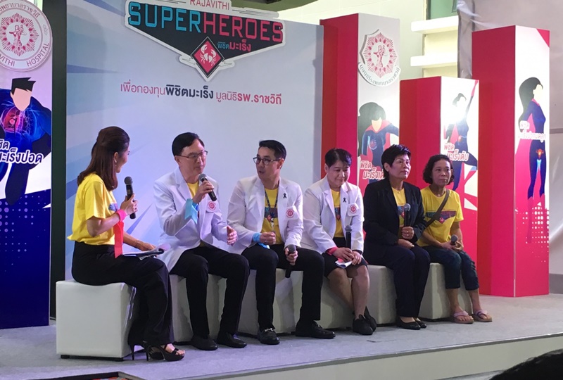 นายแพทย์สมเกียรติ ลลิตวงศา ผู้อำนวยการโรงพยาบาลราชวิถี และแพทย์ผู้เชี่ยวชาญโรคมะเร็ง จัดกิจกรรม ชวนคนไทยมาร่วมเป็นหนึ่งในทีมซุปเปอร์ฮีโร่ พิชิตมะเร็ง โดยร่วมบริจาคสมทบกองทุนพิชิตมะเร็ง โดยมีศิลปินดารานักร้องหลายรุ่น มาร่วมงานพร้อมเป็นกระบอกเสียงประชาสัมพันธ์ให้กับโครงการฯ เช่น สมบัติ เมทะนี รอง เค้ามูลคดี ศิริลักษณ์ ผ่องโชค ในงานยังจัดบูธให้ประชาชนสามารถมาตรวจคัดกรองมะเร็งได้กับแพทย์ผู้เชี่ยวชาญ มีการเสวนาแนวทางพิชิตมะเร็ง “ มะเร็งศีรษะ-คอมะเร็งที่ถูกมองข้ามและมะเร็งน่าห่วงในสตรีไทยยุคใหม่”