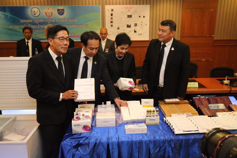 พ.ต.อ. ไพสิฐ วงศ์เมือง อธิบดีกรมสอบสวนคดีพิเศษ (ดีเอสไอ) พร้อมด้วยนายแพทย์ธเรศ กรัษนัยรวิวงค์ เลขาธิการคณะกรรมการอาหารและยา (อย.) ทันตแพทย์อาคม ประดิษฐสุวรรณ รองอธิบดีกรมสนับสนุนบริการสุขภาพ (สบส.) ร่วมกันแถลงข่าวผลการบุกทลายเครือข่ายบริษัทผู้นำเข้าและจำหน่ายสินค้าเสริมความงามจากต่างประเทศที่ละเมิดทรัพย์สินทางปัญญา จำนวน 12 จุดในพื้นที่กรุงเทพมหานคร เมื่อวานนี้(12 มิ.ย.62) ซึ่งเป็นการบูรณาการร่วมกันระหว่างหน่วยงานราชการที่เกี่ยวข้อง พร้อมสนธิกำลังจัดชุดปฏิบัติการร่วมกัน 12 ชุด เข้าปฏิบัติการตรวจค้น ตามหมายค้นของศาลทรัพย์สินทางปัญญาและการค้าระหว่างประเทศกลาง ทั้งนี้ได้มีตัวแทนจากผู้เสียหายเข้าร่วมปฏิบัติการตรวจค้นเพื่อชี้ยืนยันเครื่องหมายสินค้าด้วย ผลการตรวจค้นทั้ง 12 จุด พบของกลางเป็นยาละเมิดเครื่องหมายการค้า ยาที่ไม่ได้ขึ้นทะเบียนตำรับยา และผลิตภัณฑ์เสริมความงามจำนวนประมาณ 400,000 ชิ้น มีมูลค่าของกลางประมาณ 80 ล้านบาท ซึ่งจนถึงปัจจุบันยังตรวจนับและแยกประเภทของกลางไม่แล้วเสร็จเนื่องจากมีปริมาณจำนวนมาก และการกระทำความผิดในคดีนี้ เป็นความผิดที่เกี่ยวข้องกับกฎหมายหลายฉบับ ประกอบด้วย พระราชบัญญัติยา พ.ศ. 2510, พระราชบัญญัติเครื่องสำอาง พ.ศ. 2558, พระราชบัญญัติเครื่องหมายการค้า พ.ศ. 2534 และพระราชบัญญัติศุลกากร พ.ศ. 2560