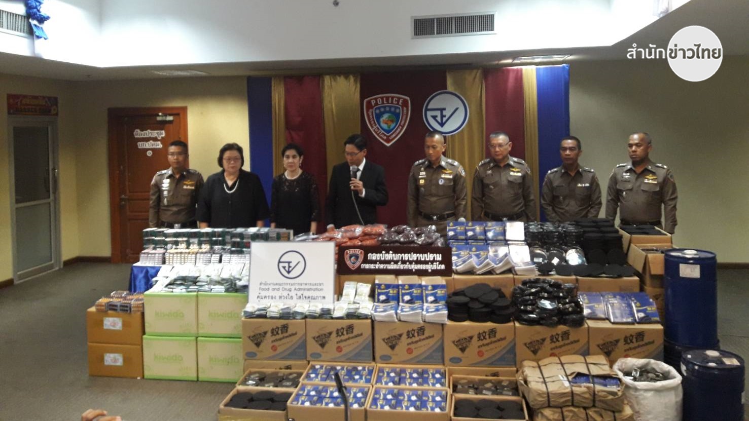 พลตำรวจตรีศิร์ธัชเขต ครูวัฒนเศรษฐ์ ผู้บังคับการปราบปรามการกระทำความผิดเกี่ยวกับการคุ้มครองผู้บริโภคหรือ ปคบ.พร้อมนายแพทย์ธเรศ กรัษนัยรวิวงค์ เลขาธิการคณะกรรมการอาหารและยา(อย.) ร่วมกับ เภสัชกรหญิงสุภัทรา บุญเสริม รอง เลขาฯ อย.แถลงผลการตรวจค้นโรงงานลักลอบผลิตยาจุดกันยุงยี่ห้อกวางทอง ซึ่งไม่ขึ้นทะเบียนและขออนุญาตผลิตตามกฎหมาย พร้อมยึดสินค้า 79,200 กล่อง มูลค่ากว่า 500,000 บาท