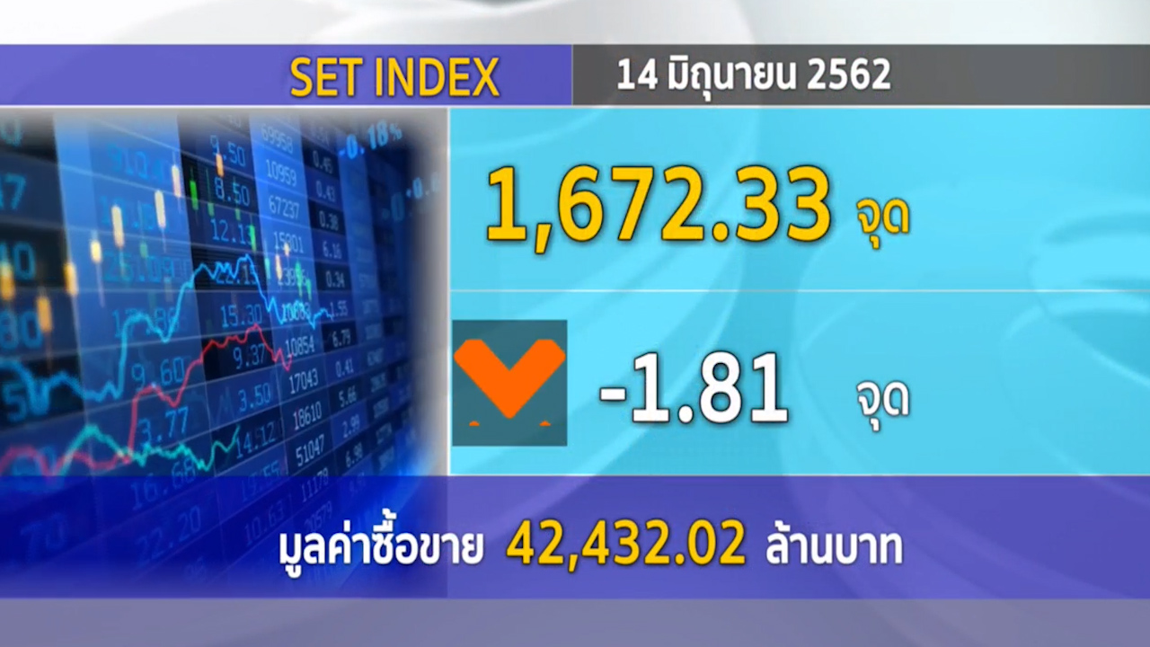 กทม. 14 มิ.ย. – ดัชนีหุ้นไทยวันนี้ (14 มิ.ย.) ปิดลบ 1.81 จุด อยู่ที่ 1,672.33 จุด มูลค่าการซื้อขาย 42,432.02 ล้านบาท .- สำนักข่าวไทย