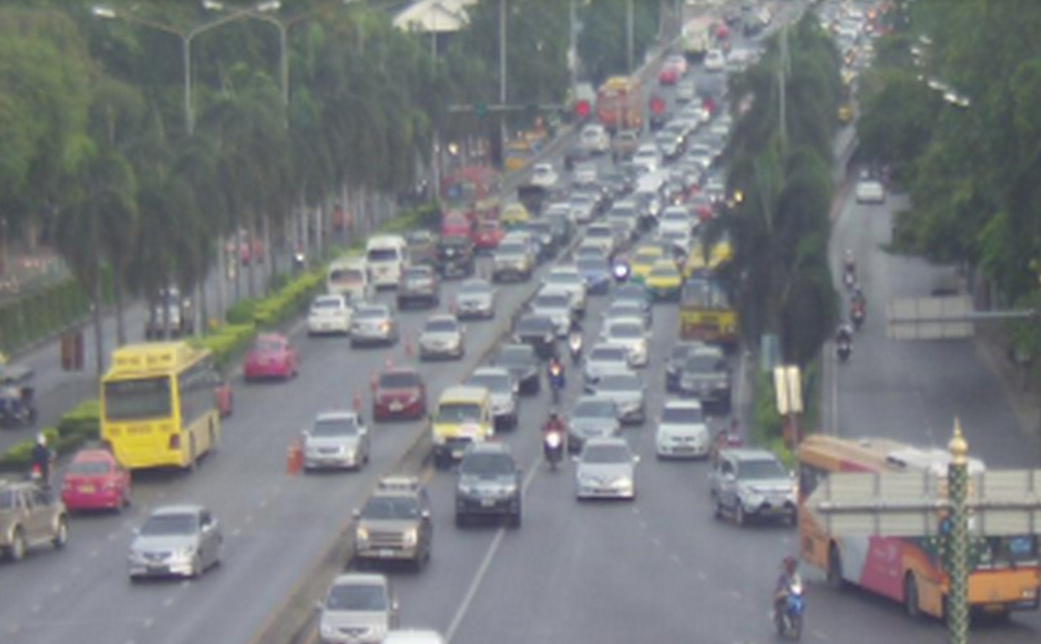 การจราจรถนนพิษณุโลก ขาเข้า ไปแยกยมราช ขึ้นทางด่วน รถหนาแน่น ท้ายหน้าสนามม้านางเลิ้ง