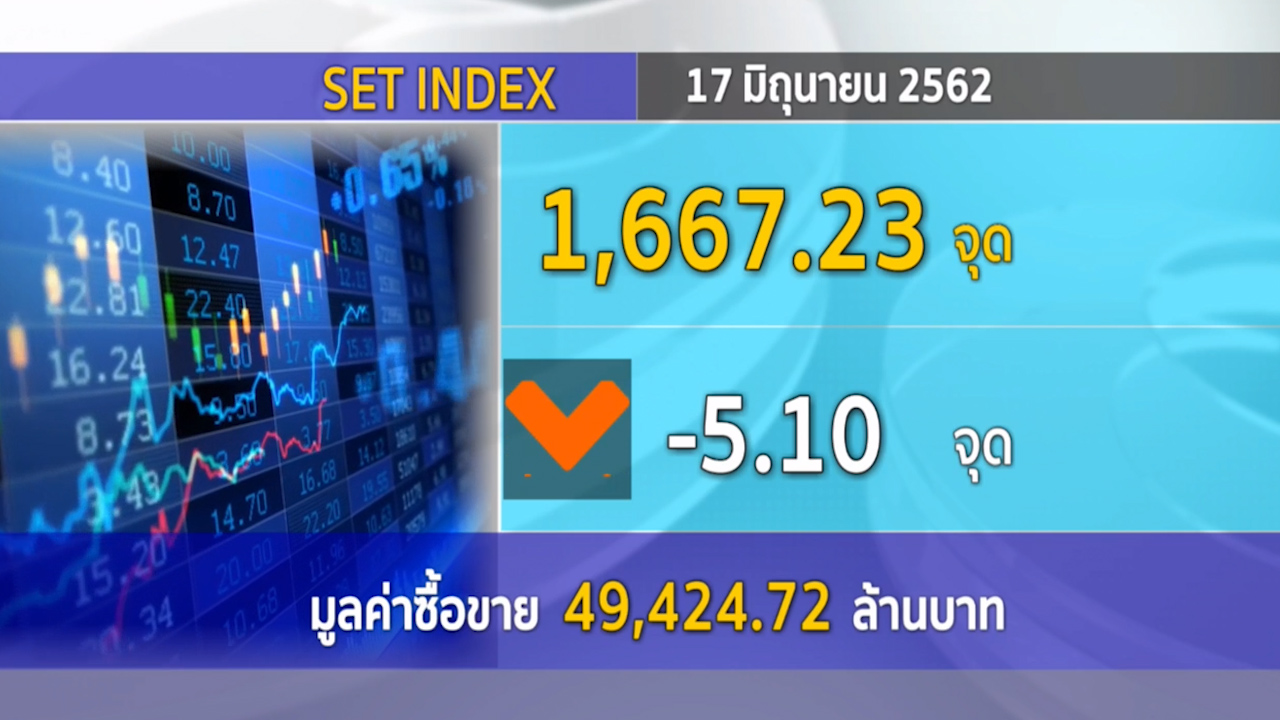 กทม. 17 มิ.ย. – ดัชนีหุ้นไทยวันนี้ (17 มิ.ย.) ปิดลบ 5.10 จุด อยู่ที่ 1,667.23 จุด มูลค่าการซื้อขาย 49,424.72 ล้านบาท .- สำนักข่าวไทย