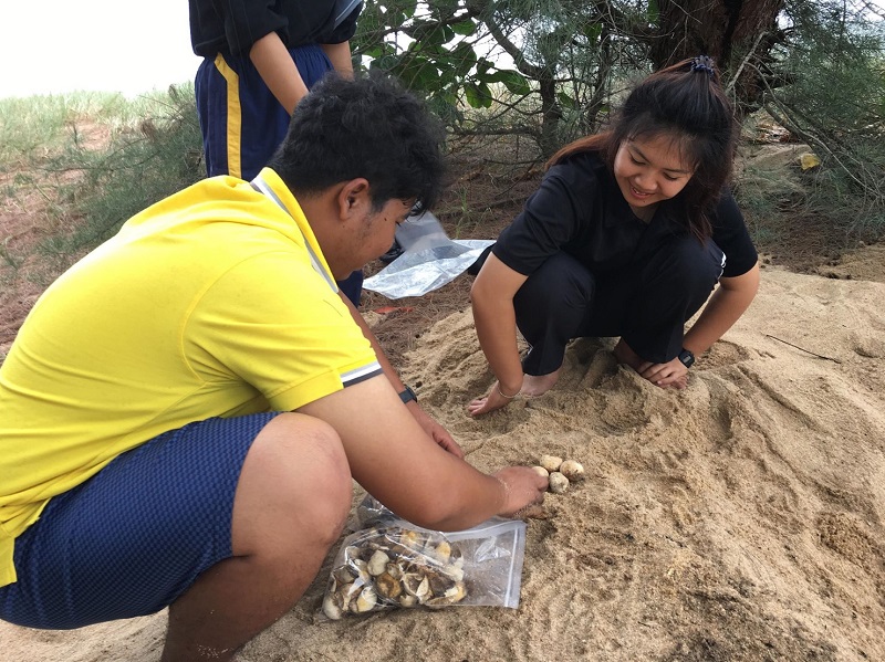 น.ส.สุรัรัตน์ กล่าวว่า ไข่เต่ามีสภาพสมบูรณ์พร้อมฟักจำนวน 2 ฟอง ที่เหลือ 75 ฟอง ได้มอบให้นักวิชาการจากศูนย์วิจัยและพัฒนาทรัยพากรทางทะเลและชายฝั่งอ่าวไทยตอนกลางนำไปศึกษาเพื่อประเมินวิเคราะห์ หลังคาดว่าแม่เต่าตนุได้ขึ้นมาวางไข่ช่วงต้นเดือนเมษายนที่ผ่านมา และก่อนหน้านี้เจ้าหน้าที่ทีมนักวิชาการได้สำรวจแหล่งอาหารเต่าทะเลบริเวณแหลมกุ่มต่อเนื่องถึงหาดดอนตาเหว่าพบว่ามีความอุดมสมบูรณ์และความหลากหลายของอาหารที่เต่ากินได้ ขณะนี้ได้ขอความร่วมมือในการงดใช้พื้นที่ชายหาดบางช่วงระยะทาง 2,800 เมตร เพื่อเว้นพื้นที่ให้เต่าวางไข่ โดยมีจิตอาสา 3 ทีมผลัดเปลี่ยนกันเฝ้าพื้นที่ตลอดแนวชายหาด 24 ชั่วโมง.-สำนักข่าวไทย