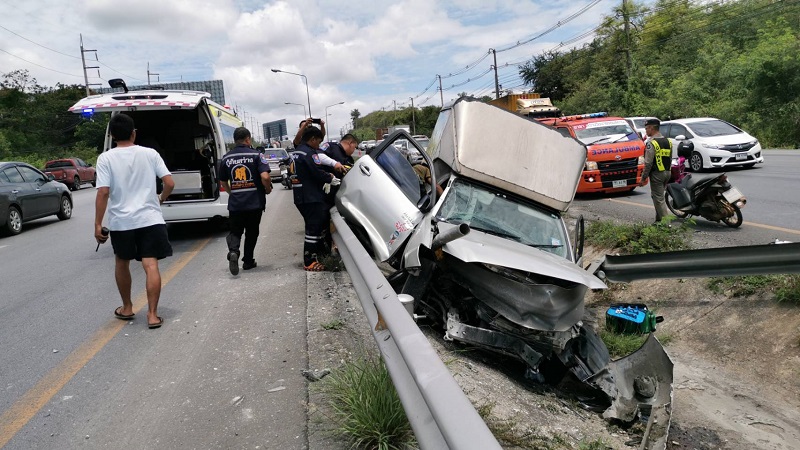 เมื่อเวลา 11.30 น. (19 มิ.ย.) พ.ต.ท.นพพร ปราชญ์กระโทก สารวัตร (สอบสวน) สภ.ปากช่อง จ.นครราชสีมา ประสานกู้ชีพโรงพยาบาลปากช่องนานาและกู้ภัยสว่างวิชาธรรมสถานปากช่องเร่งช่วยเหลืออุบัติเหตุรถกระบะ สีบรอนซ์เงิน ชนการ์ดเลนทางลงมอบันไดม้า ฝั่งขาเข้าจังหวัด ถนนมิตรภาพ กม.ที่ 53 + 800 ต.หนองน้ำแดง อ.ปากช่อง สภาพหน้ารถพังเสียหาย คนขับอาการสาหัส