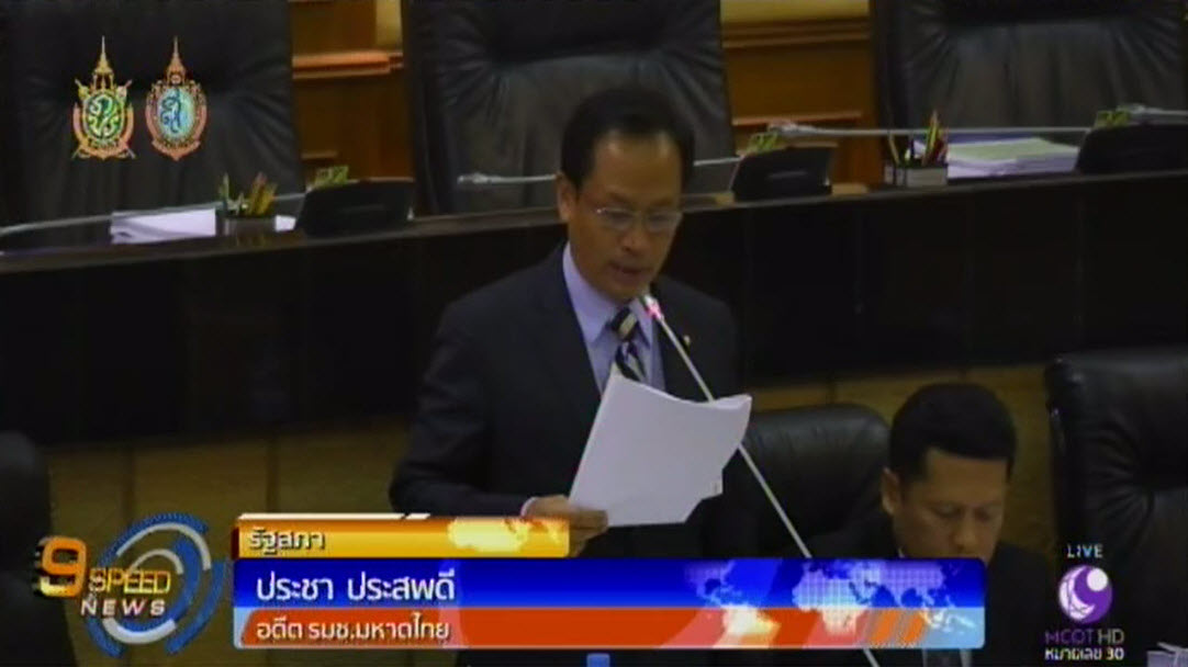 การประชุมสภานิติบัญญัติแห่งชาติ (สนช.) เพื่อแถลงปิดสำนวนคดีถอดถอนนายประชา ประสพดี ออกจากตำแหน่งรัฐมนตรีช่วยว่าการกระทรวงมหาดไทย กรณีคณะกรรมการป้องกันและปราบปรามการทุจริตแห่งชาติ (ป.ป.ช.) ชี้มูลความผิดตามประมวลกฎหมายอาญา มาตรา 157 กล่าวหาก้าวก่าย แทรกแซงการทำงานของบอร์ดองค์การตลาด กระทรวงมหาดไทย เพื่อช่วยเหลือคดีทุจริตให้ นายธีธัช สุขสะอาด อดีตผู้อำนวยการองค์การตลาด เมื่อปี 2555