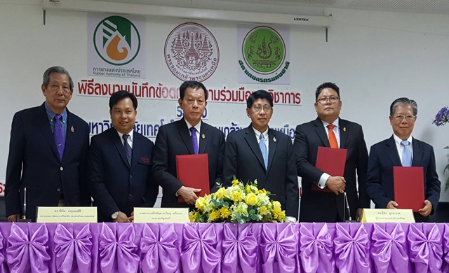 กรุงเทพฯ 18 ส.ค. – นายวิษณุ เครืองาม รองนายกรัฐมนตรี เป็นประธานในพิธีลงนามบันทึกข้อตกลงความร่วมมือทางวิชาการระหว่างมหาวิทยาลัยเทคโนโลยีพระจอมเกล้าพระนครเหนือ (มจพ.) กับการยางแห่งประเทศไทย (กยท.)และสภาเกษตรกรแห่งชาติ เพื่อสนับสนุนบุคลากร นักวิชาการ นักวิจัย ที่มีความเชี่ยวชาญด้านยางพารา เช่น นวัตกรรมควบคุมคุณภาพยางพารา การบริหารจัดการวัตถุดิบ ผลิตภัณฑ์สำเร็จรูประบบขนส่งและการแปรรูปเป็นผลิตภัณฑ์นวัตกรรมใหม่ โดยเฉพาะการพัฒนางานวิจัยที่นำไปใช้ได้จริงกับเกษตรกร การถ่ายทอดเทคโนโลยีและนวัตกรรมการแปรรูปยางพารา รวมถึงอบรมให้ความรู้แก่บุคลากรในหน่วยงานที่เกี่ยวข้องทั้งภาครัฐและเอกชน และร่วมกันจัดตั้งคณะคณะกรรมการร่วมไตรภาคี เพื่อขับเคลื่อนนโยบายและยุทธศาสตร์การพัฒนายางพาราในพื้นที่ประเทศไทยตามนโยบายของรัฐบาล