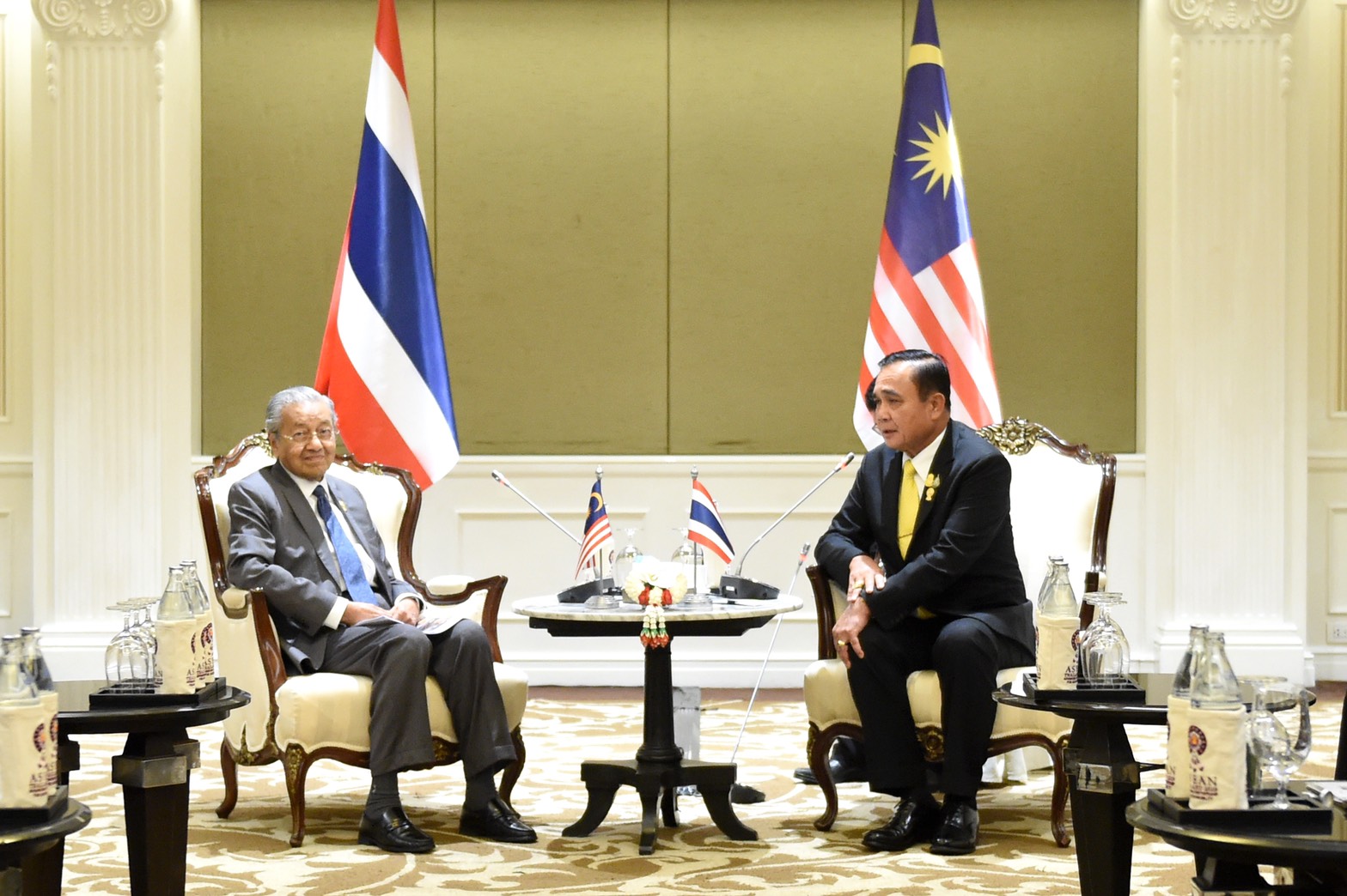 พลโทวีรชน สุคนธปฏิภาค รองโฆษกประจำสำนักนายกรัฐมนตรี เปิดเผยผลการหารือทวิภาคี ระหว่างพลเอกประยุทธ์ จันทร์โอชา นายกรัฐมนตรี กับนายมหาธีร์ มูฮัมหมัด นายกรัฐมนตรีมาเลเซีย ว่านายกรัฐมนตรีแสดงความชื่นชมนายกรัฐมนตรีมาเลเซียเป็นนักการเมืองที่มีบทบาทสำคัญในอาเซียน ทั้งสองต่างยินดีที่ความร่วมมือระหว่างกันมีความคืบหน้าในทุกมิติ โดยเฉพาะความร่วมมือในการแก้ปัญหาชายแดนภาคใต้ของไทย