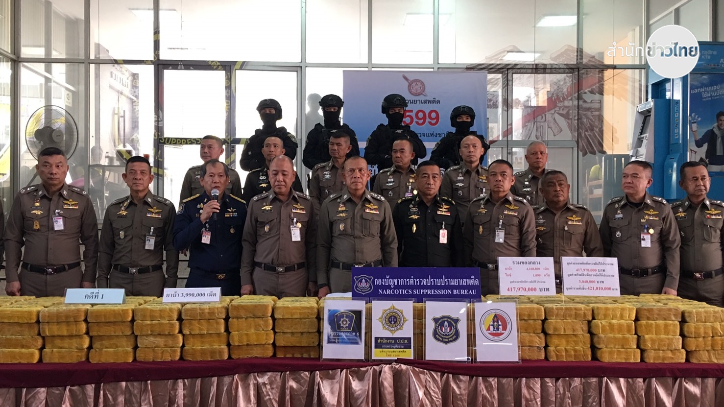 พลตำรวจเอกเฉลิมเกียรติ ศรีวรขาน รองผู้บัญชาการตำรวจแห่งชาติ และพลตำรวจโทชินภัทร สารสิน ผู้บัญชาการปราบปรามยาเสพติด แถลงจับกุมคดียาเสพติดสำคัญ 2 คดี ยึดของกลางกว่า 4,100,000 เม็ด, ไอซ์ 1 กิโลกรัม