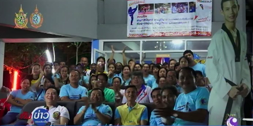 และที่ปทุมธานี บรรยากาศที่ยิมส์เทควันโด หมู่บ้านพรธิสาร 6 คลอง 7 ต.บึงบอน อ.หนองเสื่อ ซึ่งจัดเป็นสถานที่ชมและส่งกำลังใจไปให้นายเทวินทร์ (น้องเทม) หาญปราบ นักกีฬาเทควันโด ตัวแทนทีมชาติไทยในการแข่งขันกีฬาโอลิมปิคเกมส์ ที่นครริโอ เดอ จาเนโร ประเทศบราซิล โดยมีนายนิรัตน์ พงษ์สิทธิถาวร รองผู้ว่าราชการจังหวัดปทุมธานี นายชาญ พวงเพชร นายกองค์การบริหารส่วนจังหวัดปทุมธานี นายอัครพล พึ่งธรรม ผู้อำนวยการสำนักงานการกีฬาแห่งประเทศไทย จังหวัดปทุมธานี นายสำเนียง มานะ นายก อบต.บึงบอน พร้อมด้วยนายยศสรัล หาญปราบ นางนิศาภัทญ์ หาญปราบ พ่อและแม่ ของนายเทวินทร์ (น้องเทม) หาญปราบ นักกีฬาเทควันโด ตัวแทนทีมชาติไทย ซึ่งพบกับ คิม แต ฮุน นักเทควันโดจากเกาหลีใต้