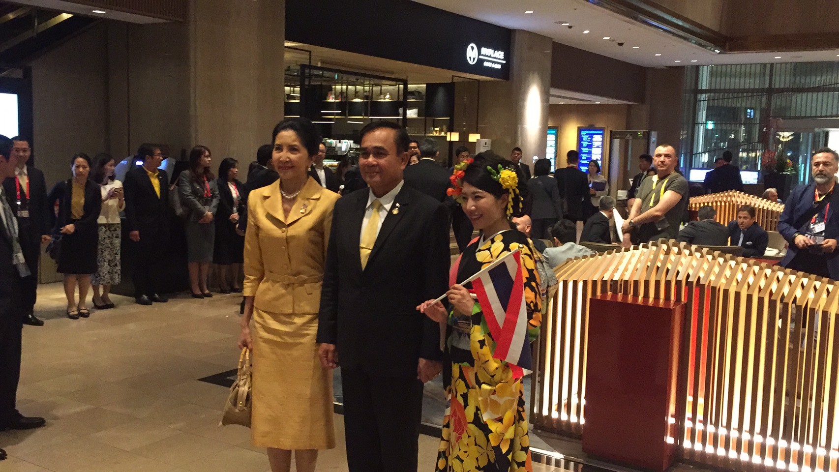 อย่างไรก็ตามเมื่อนายกรัฐมนตรีเดินทางถึงโรงแรมที่พัก ได้จัดการต้อนรับโดยแต่งกายในชุดกิโมโน ที่ตัดเย็บด้วยผ้าที่มีลวดลายความเป็นไทย คือ ภาพธงชาติ ภาพช้าง ดอกคูณ และโคมลอย โดยนายกรัฐมนตรีขอบคุณสำหรับการต้อนรับอย่างอบอุ่น และร่วมถ่ายภาพเป็นที่ระลึก.-สำนักข่าวไทย