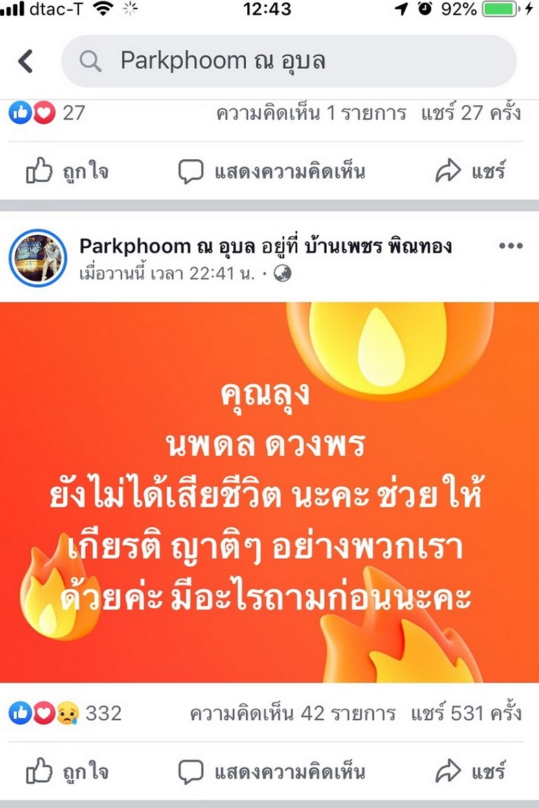 อุบลราชธานี 28 มิ.ย.- ลือหนัก! “นพดล ดวงพร” ศิลปินอาวุโสแดนอีสานเสียชีวิต ญาติย้ำยังไม่เสียชีวิตตามที่แชร์กัน และรักษาตัวอยู่ใน กทม. มีครอบครัวเฝ้าดูแลตลอด เผยปี 60 ก็ลือกันมาแล้ว ซ้ำยังอ้างขอรับบริจาคเงินช่วยเหลือ วอนอย่าหลงเชื่อ