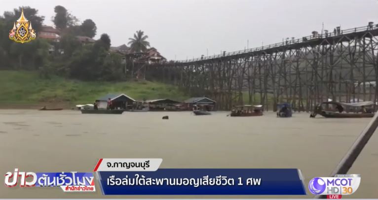 กาญจนบุรี 30 มิ.ย.-เรือเล็กล่มใต้สะพานมอญ จ.กาญจนบุรี ชายอายุ 34 ปีจมน้ำเสียชีวิต หลังหมดแรงเพราะช่วยภรรยาและลูกสาวที่ว่ายน้ำไม่เป็น