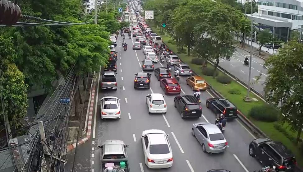 ถนนพหลโยธิน ขาเข้า ไปวงเวียนบางเขน รถติดขัดมาก ท้ายสะสมตรงข้ามตลาดยิ่งเจริญ.-สำนักข่าวไทย