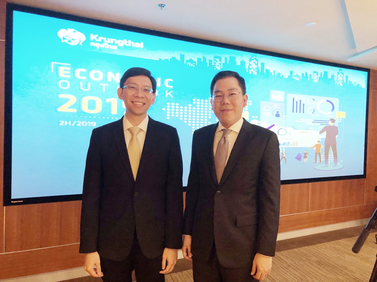 “แม้สหรัฐและจีนตกลงพักรบชั่วคราว หลังการประชุม G-20 เมื่อต้นเดือนกรกฎาคม แต่คาดว่าสหรัฐจะยังเก็บภาษีกับสินค้ามูลค่า 300,000 ล้านดอลลาร์จากจีนในช่วงไตรมาสที่ 4 ซึ่งจะกดดันภาคการส่งออกต่อไป สำหรับแรงกระตุ้นจากภาครัฐมีค่อนข้างจำกัด นอกจากมาตรการช่วยเหลือผู้มีรายได้น้อยแล้ว คาดว่าเม็ดเงินลงทุนภายใต้แผนปฏิบัติการด้านคมนาคม เพื่อขับเคลื่อนโครงสร้างพื้นฐานของประเทศ จะเบิกจ่ายได้เพียง 77,000 ล้านบาทในปีนี้ ซึ่งน้อยกว่าแผนฯ แต่จะเพิ่มขึ้นเรื่อย ๆ ในปีถัดไป ส่วนงบประมาณรายจ่ายประจำปี 2563 อาจเบิกจ่ายไม่เต็มที่ช่วงต้นปีงบประมาณ นอกจากนี้ มาตรการกระตุ้นตลาดที่อยู่อาศัยกลับจูงใจแค่ระดับราคาต่ำกว่า 1 ล้านบาท ขณะที่ยูนิตเหลือขายสะสมและเปิดขายใหม่กระจุกตัวราคา 1-5 ล้านบาท จึงอาจต้องเตรียมรับมือกับภาวะตลาดที่อยู่อาศัยที่ชะลอตัว” นายพชรพจน์ กล่าว