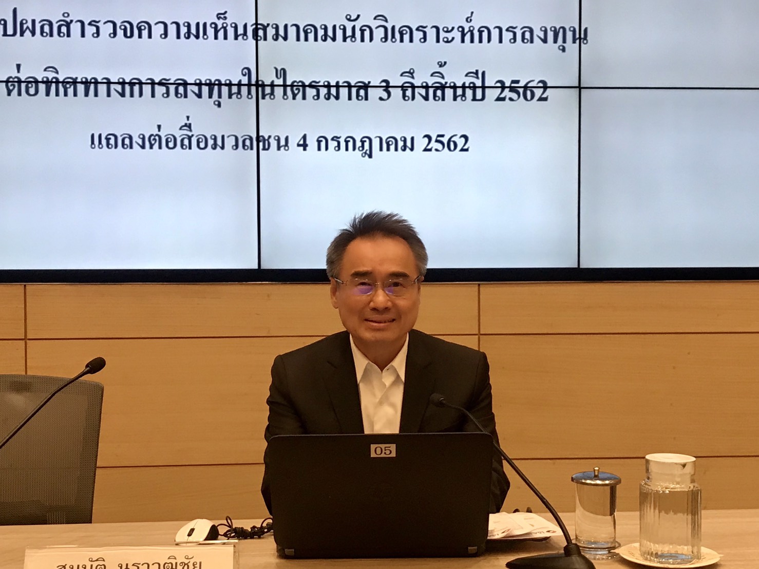 นายสมบัติ นราวุฒิชัย เลขาธิการและกรรมการผู้อำนวยการสมาคมนักวิเคราะห์การลงทุน ได้เปิดเผยผลสำรวจความเห็นนักวิเคราะห์การลงทุนและผู้จัดการลงทุนจำนวน 27 บริษัทพบว่า เป้าดัชนีสิ้นปี 2562 อยู่ที่ระดับ 1,755 จุด มากกว่าการสำรวจครั้งก่อน ที่คาดการณ์ไว้ที่ 1,740 จุด โดยนักวิเคราะห์คาดการณ์จุดสูงสุดของดัชนีอยู่ที่ 1,794 จุด และต่ำสุดอยู่ที่ 1,641 จุด โดยปัจจัยบวกมาจากเงินทุนต่างชาติไหลเข้าตลาดหุ้นไทย ซึ่งคาดว่าจะไหลเข้าอีกประมาณ 40,000 – 50,000 ล้านบาทในเวลา 6 เดือน รองลงมาคือทิศทางอัตราดอกเบี้ยของสหรัฐฯที่คคาดว่าจะปรับลดลงหนึ่งครั้งในปีนี้ รวมทั้งปัจจัยการเมืองในประเทศ ที่มีความชัดเจนเรื่องการจัดตั้งรัฐบาลใหม่ ส่วนปัจจัยลบ คือความกังวลเกี่ยวกับเศรษฐกิจโลกที่อยู่ในภาวะชะลอตัวลง ผลประกอบการของบริษัทจดทะเบียนที่มีแนวโน้มลดลง โดยนักวิเคราะห์คาดการณ์กำไรสุทธิต่อหุ้นอยู่ที่ 106.52 บาท ลดลงจาก 110 บาท ส่วนอัตราการเติบโตของกำไรสุทธิอยู่ที่ร้อยละ 7.88 ลดลงจากร้อยละ 9.6 สำหรับดอกเบี้ยนโยบายของไทย คาดว่าคณะกรรมการนโยบายการเงิน (กนง.) จะคงอัตราดอกเบี้ยนโยบายอยู่ที่ร้อยละ 1.75 ต่อปี