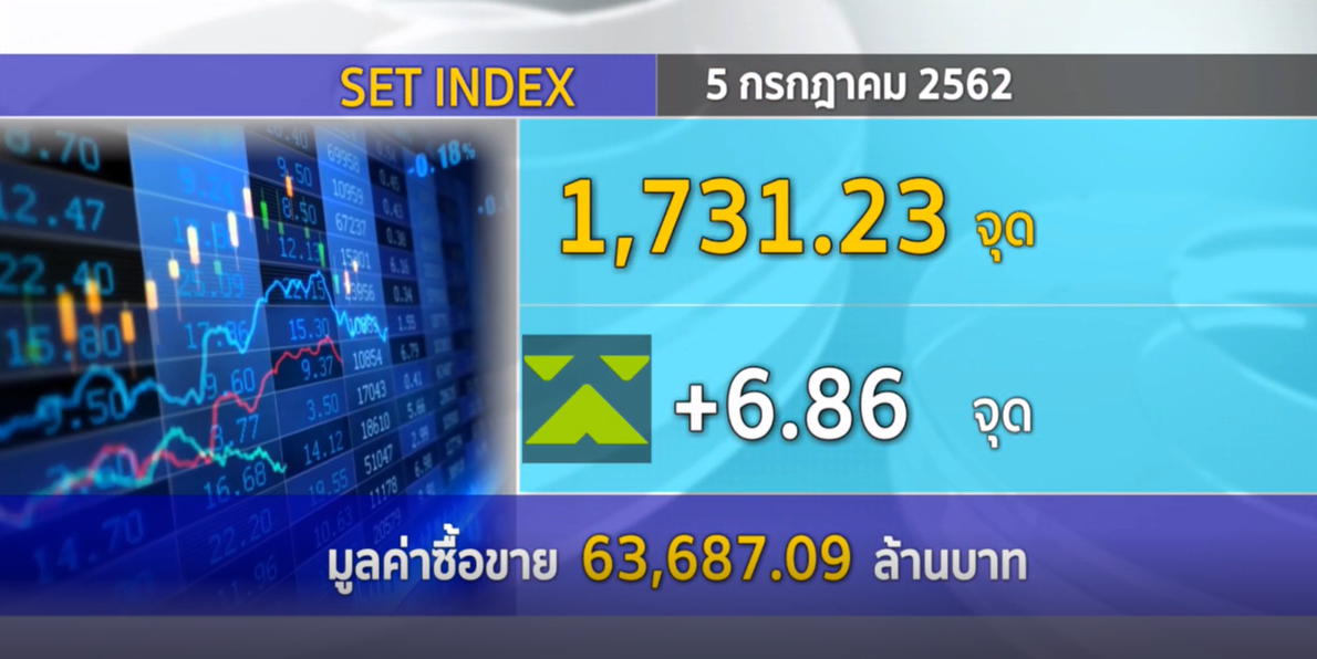 กรุงเทพฯ 5 ก.ค. – ตลาดหลักทรัพย์ปิดวันนี้ที่ระดับ 1,731.23 จุด เพิ่มขึ้น 6.86 จุด (+0.40%) มูลค่าการซื้อขาย 63,687.09 ล้านบาท