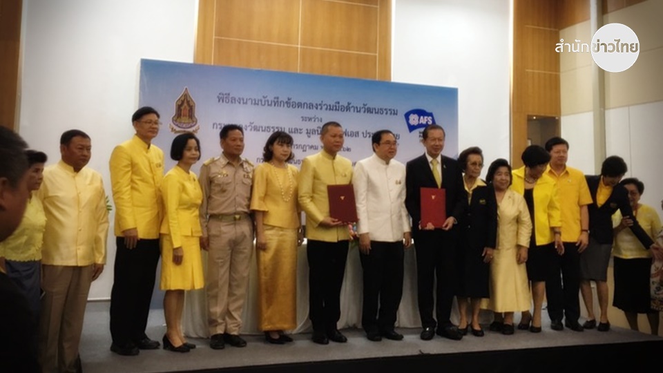 กระทรวงวัฒนธรรม (วธ.) จัดมีพิธีบันทึกข้อตกลงความร่วมมือระหว่างกระทรวงวัฒนธรรมและมูลนิธิการศึกษาและวัฒนธรรมสัมพันธ์ไทย-นานาชาติ( เอเอฟเอส) ซึ่งดำเนินงานภายใต้การกำกับดูแลของกระทรวงศึกษาธิการ (ศธ.) โดยนาย วีระโรจน์พจนรัตน์ รัฐมนตรีว่าการกระทรวงวัฒนธรรม , นายกฤษศญพงศ์ ศิริ ปลัดกระทรวงวัฒนธรรม , นายสนั่น อังอุบลกุล ประธานมูลนิธิ เอเอฟเอส ประเทศไทย ,นางสาวจิรวัฒนา จรูญภัทรพงษ์ ผู้อำนวยการใหญ่เอฟเอส ประเทศไทย และตัวแทนของทั้ง 2 หน่วยงานเข้าร่วมพิธี