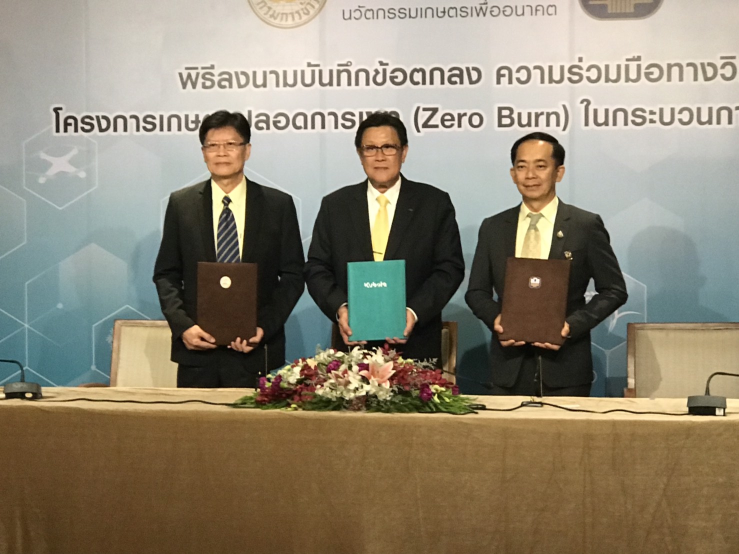 การลงนามบันทึกข้อตกลงเกษตรปลอดการเผาครั้งนี้เป็นความร่วมมือของกรมการข้าว ธนาคารเพื่อการเกษตรและสหกรณ์การเกษตร (ธ.ก.ส.) สำนักงานคณะกรรมการอ้อยและน้ำตาลทราย (สอน.) และสยามคูโบต้า