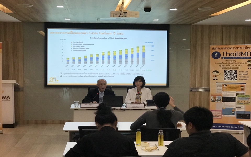 นายธาดา พฤฒิธาดา กรรมการผู้จัดการสมาคมตลาดตราสารหนี้ไทย (ThaiBMA) เปิดเผยถึงภาวะตลาดตราสารหนี้ไทยครึ่งปีแรก ว่า ตลาดตราสารหนี้ไทยโดยรวมเติบโตสูงกว่าร้อยละ 5.45 มีมูลค่าคงค้างรวมเพิ่มขึ้นเป็น 13.49 ล้านล้านบาท จาก 12.79 ล้านล้านบาทเมื่อสิ้นปีที่ผ่านมา โดยตราสารหนี้ภาคเอกชนระยะยาวมีการออกเพิ่มขึ้นถึงร้อยละ 34 เมื่อเทียบกับช่วงเดียวกันปีก่อน โดยผู้ออกรายใหญ่ 10 อันดับแรกมีมูลค่าการออกคิดเป็นสัดส่วนกว่าร้อยละ 50 ของมูลค่าการออกครึ่งแรกปี 2562 ทำให้คาดว่าปีนี้จะมีมูลค่าการออกแตะ 1 ล้านล้านบาท ส่วนตราสารหนี้ภาคเอกชนระยะสั้น มีมูลค่าการออกลดลงจากช่วงเดียวกันของปีที่แล้วกว่าร้อยละ 68 โดยเป็นการลดลงของการออกตั๋วสัญญาใช้เงิน (ตั๋ว PN) ในกลุ่มธุรกิจเดียวกัน