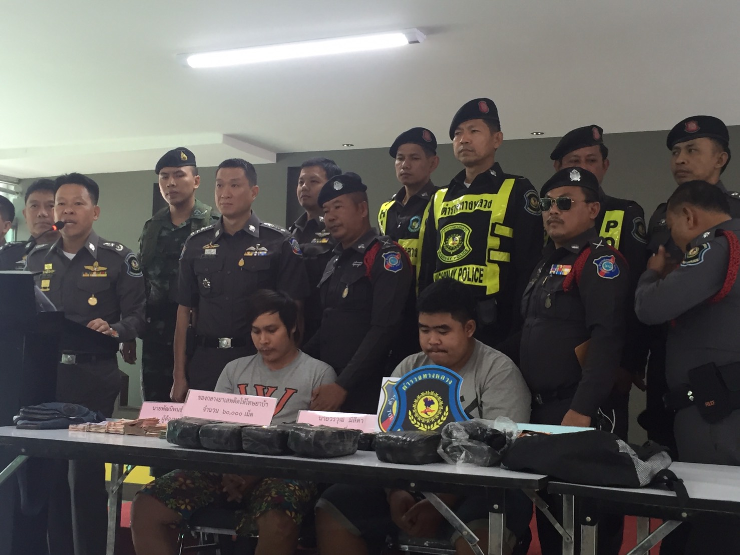 กรุงเทพฯ 16 ส.ค.- ตำรวจทางหลวงร่วมกับตำรวจท่องเที่ยวจับ 2 ผู้ต้องหารับจ้างส่งยาเสพติด ยึดของกลางยาบ้า 60,000 เม็ด เงินสดกว่า 100,000 บาท