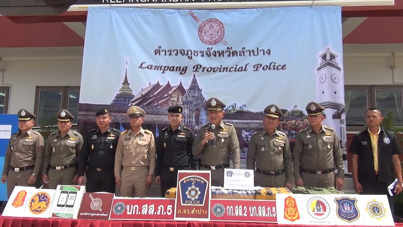 เมื่อเวลา 10.30 น. (15 ก.ค.) พล.ต.ท.มนตรี สัมบุณณานนท์ ผู้บัญชาการตำรวจภูธรภาค 5 แถลงผลการปราบปรามยาเสพติดยึดยาบ้าได้ล็อตใหญ่ 1,104,000 เม็ด ในพื้นที่จังหวัดลำปาง เนื่องจากเมื่อวันที่ 14 ก.ค.ที่ผ่านมา ชุดปราบปรามยาเสพติด สภ.เขลางค์นคร ได้วางแผนล่อซื้อยาบ้า 4,000 เม็ด จากนายศรายุทธ รัตนดิลก ณ ภูเก็ต อายุ 34 ปี ขณะขับรถกระบะ 4 ประตู นำยาบ้ามาโยนทิ้งไว้ที่จุดนัดบริเวณปากทางเข้าหมู่บ้านทุ่งกู่ด้าย หมู่ 6 ต.ปงแสนทอง อ.เมือง จ.ลำปาง และถูกเจ้าหน้าที่สกัดจับไว้ได้ จากนั้นเจ้าหน้าที่ได้ขยายผลเข้าตรวจค้นบ้านของนายศรายุทธ