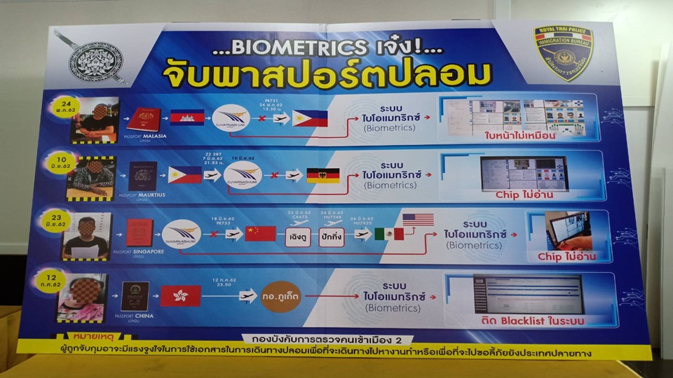 สำหรับการใช้ไบโอแมทริกซ์ Biometrics จัดการฐานข้อมูลภาพถ่ายใบหน้าและลายนิ้วมือ ผู้เข้า-ออกนอกประเทศ สามารถจับผู้กระทำความผิด ตั้งแต่วันที่ 1พฤษภาคม-14 กรกฎาคม2562 ได้รวม 7,765 ราย ซึ่งเป็นผู้ต้องหาตามหมายจับ 141 ราย //ผู้ต้องหาโอเวอร์สเตย์ 7,417 ราย และ ผู้ต้องหา watchlist 66 ราย และ แบล็คลิส 141 ราย .-สำนักข่าวไทย