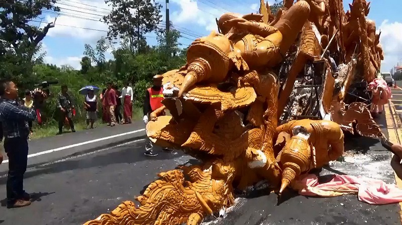 เมื่อเวลา 10.48 น. (16 ก.ค.) รถขบวนต้นเทียนแกะสลักขนาดใหญ่ของวัดเมืองเดช ต.เมืองเดช อ.เดชอุดม จ.อุบลราชธานี ซึ่งเคลื่อนมาตามเส้นทางเพื่อนำมาตั้งโชว์รอบสวนสาธารณะทุ่งศรีเมือง เขตเทศบาลนครอุบลราชธานี เย็นวันนี้ ก่อนเข้าประกวดในงานแห่เทียนพรรษาวันพรุ่งนี้ (17 ก.ค.) ปรากฏว่าเมื่อขบวนต้นเทียนมาถึงเขตบ้านป่าหวาย ต.ป่าโมง อ.เดชอุดม ส่วนท้ายของต้นเทียนแกะสลักเกิดหักล้มลงมา เบื้องต้นทีมงานได้ช่วยกันนำส่วนที่เสียหายออกและเคลื่อนขบวนเทียนมายังจุดพักในอำเภอวารินชำราบ เพื่อซ่อมแซมแก้ไข ท่ามกลางชาวบ้านมาให้กำลังใจกับคณะช่างเทียนอย่างเต็มที่ ขณะเดียวกัน นายนคร ศิริปริญญานันท์ นายอำเภอเดชอุดม รุดลงพื้นที่ติดตามเหตุการณ์เพื่ออำนวยความสะดวกให้กับคณะช่างเทียน