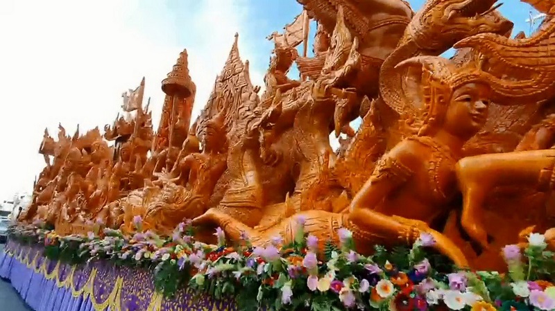 อุบลราชธานี 16 ก.ค.- คุ้มวัดกว่า 50 แห่ง นำต้นเทียนแกะสลักตั้งโชว์รอบสวนสาธารณะทุ่งศรีเมือง อุบลราชธานี ให้นักท่องเที่ยวชมความอลังการอย่างเต็มตา รวมถึงต้นเทียนวัดเมืองเดชแก้ไขเสร็จแล้ว หลังเกิดเหตุหักล้มกลางทาง พร้อมร่วมขบวนแห่ประกวดวันพรุ่งนี้